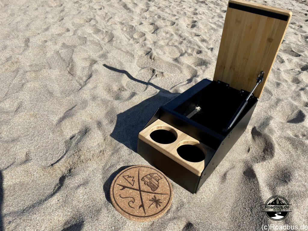 Nichts und niemand ist perfekt, schon gar nicht der VW-California. Viele der Ergänzungen und Add-Ons, die es mittlerweile in unseren Bus geschafft haben, stellten sich auf Reisen als überflüssig oder unpraktisch heraus. Andere sind jedoch unverzichtbar geworden und wir möchten sie nicht mehr missen. Hierzu gehört u. a. der Heckauszug von Grüntal Mobilcamping. Auch die Trockentrenntoilette von KoMa.Land ist ein solcher Kandidat und unvorstellbar, ohne sie auf Reisen zu gehen. Zu der Kategorie „Muss immer an Bord sein“, zählt auch die Mittelkonsole zwischen den beiden Vordersitzen von van-zubehör.de.