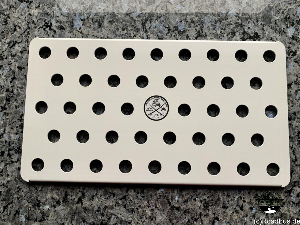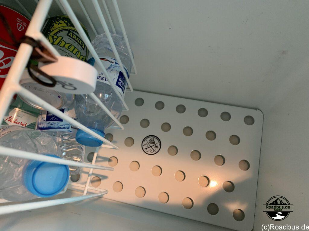 Der Einleger ist aus pulverbeschichtetem Aluminium, nur 1,5 cm hoch, und nimmt sehr wenig Raum vom Kühlschrank in Anspruch. Selbstverständlich passen weiterhin handelsübliche Flaschen, Wasser, Cola, Sekt und Wein oder was immer Ihr sonst noch im Kühlschrank herumfahrt. Optisch passt es perfekt in den Kühlschrank und zusammen mit dem bereits getesteten Lüfterzusatz vom Benno gibt es endlich eine optimale Kälteverteilung im Kühlschrank. Es bildet sich viel weniger Eis und vor allem steht nichts mehr im Kondenswasser. Für mich eine ganz klare Empfehlung. Ihr bekommt dieses und andere nützliche Sachen im Onlineshop von Grünthal Mobilcamping.