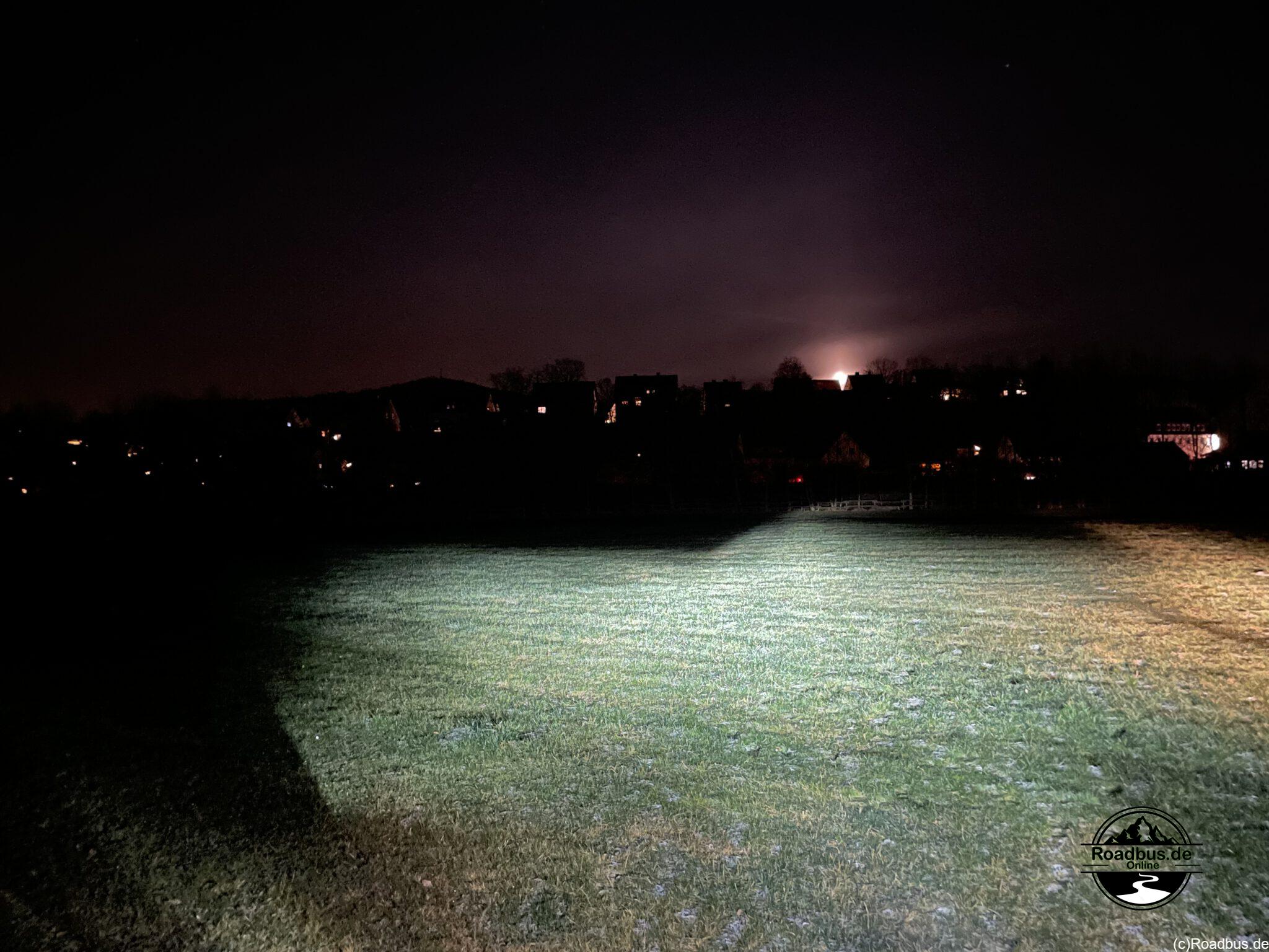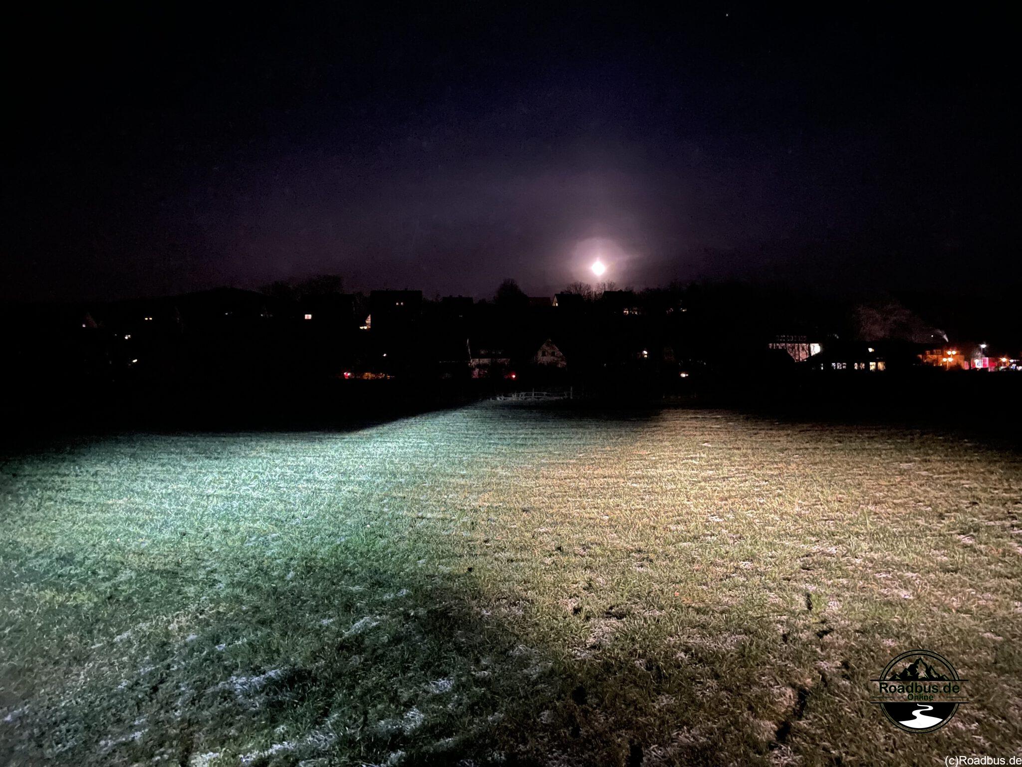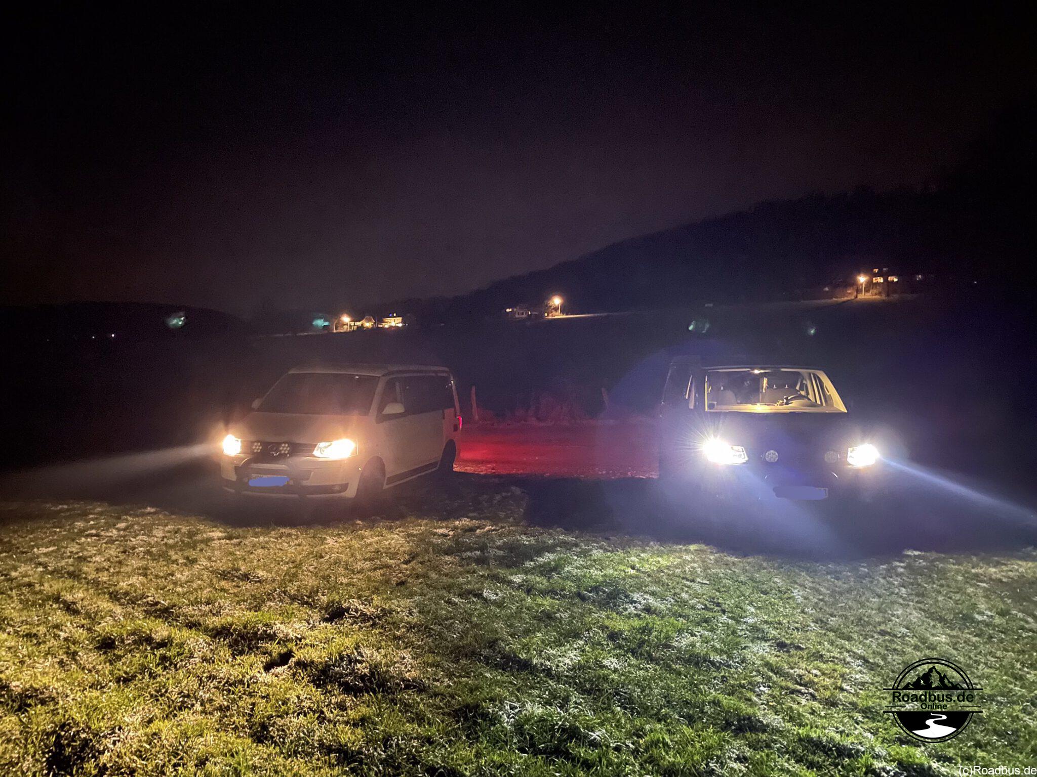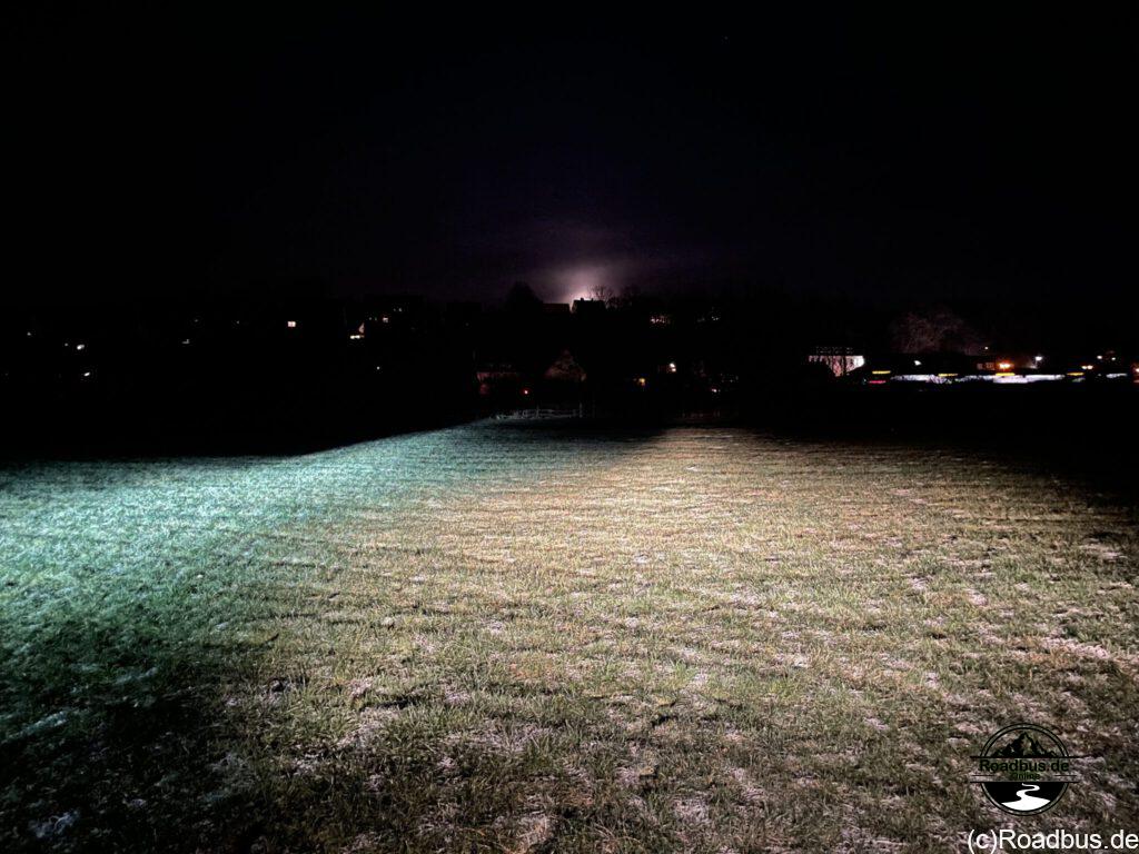 Auf freiem Feld wird sofort klar, nicht nur die Lichtfarbe macht hier den Unterschied. Die Scheinwerfer sind merklich heller und auch die Konturen sind sehr viel deutlicher abgegrenzt. Was für ein Unterschied! Beim Fernlicht wird das bei uns sicher nicht so relevant sein, da wir beide über Zusatzscheinwerfer verfügen. Der Unterschied beim Abblendlicht ist aber enorm.