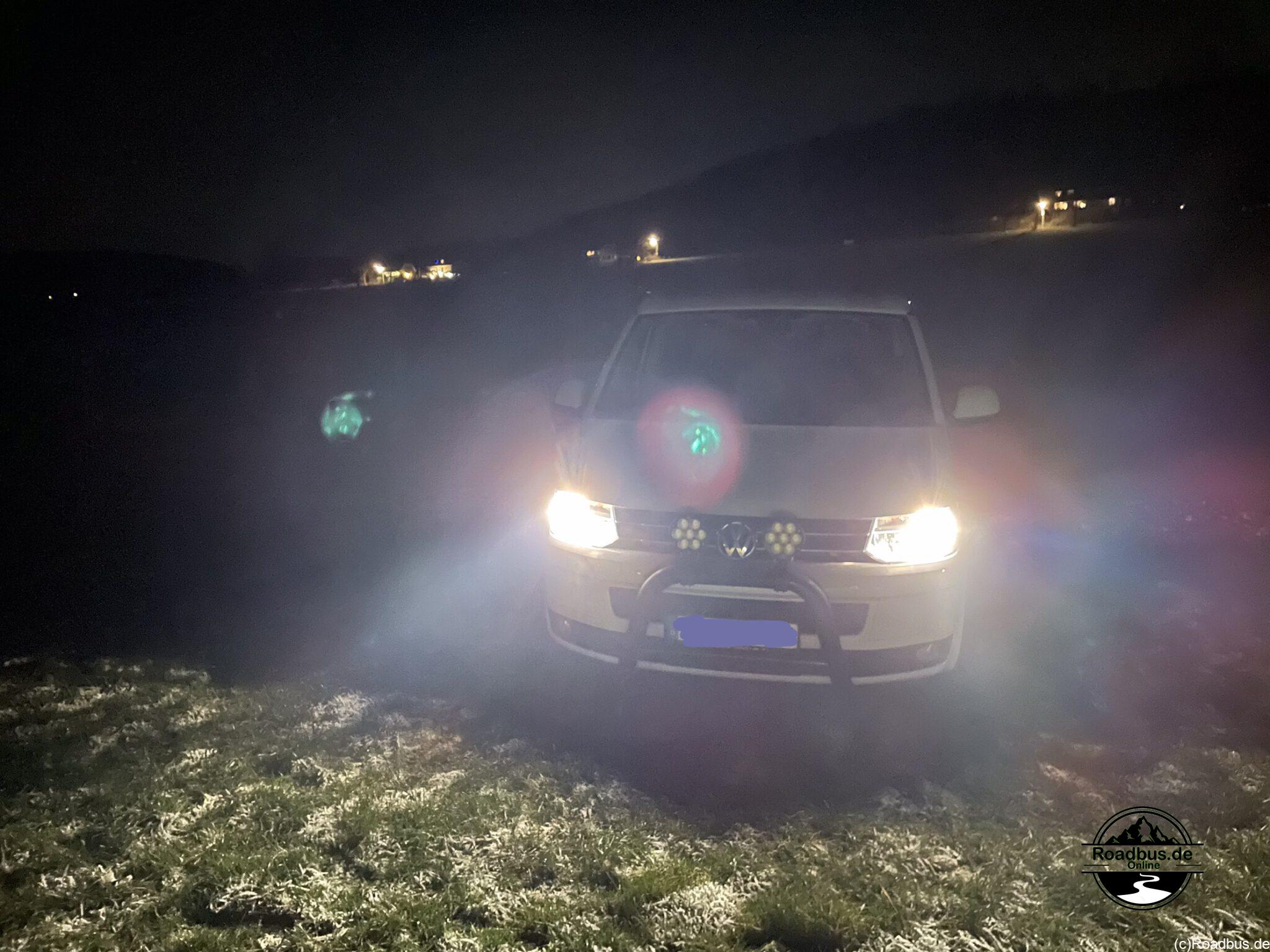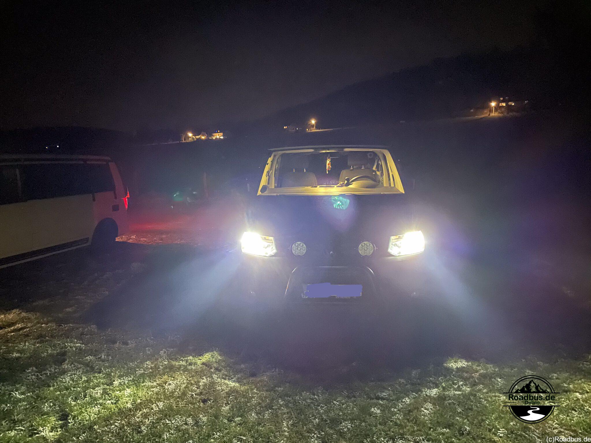 Natürlich kann ich meinen Neid über diese Veränderung nicht verbergen. Schliesslich gibt es immer noch keine zugelassenen LED H7 Leuchtmittel für den Bus. Aber so ist es nun mal und einen Freund mit besserem Licht auszustatten, macht ja auch grosse Freude.